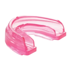 The Braces mouthguard offers essential protection for athletes with braces, specifically designed to conform to upper brace brackets for instant comfort and prevention from lacerations. Made with 100% medical-grade silicone, it adapts to changes in mouth structure as teeth adjust. Available in strapped or strapless versions.